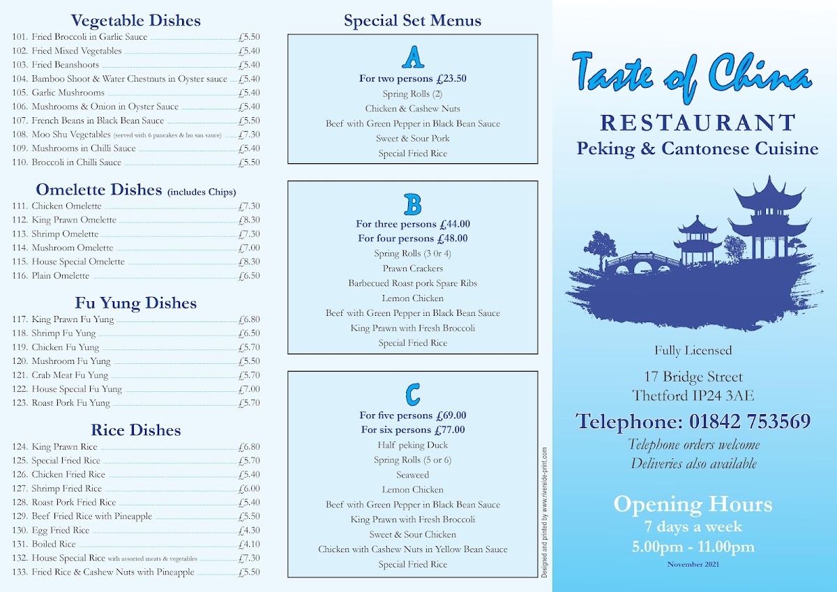 Welcome to Wong's Taste of China, where culinary delight meets exceptional service. Located at 17 Bridge St, Thetford, this gem is renowned for its amazing food and friendly staff. Customers rave about the delicate balance of flavors, showcasing dishes that are cooked to perfection.